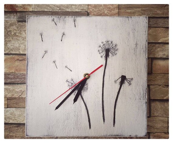 Dandelions Clock Wood Wall Clock Rustic Clock Cute Gift Etsy